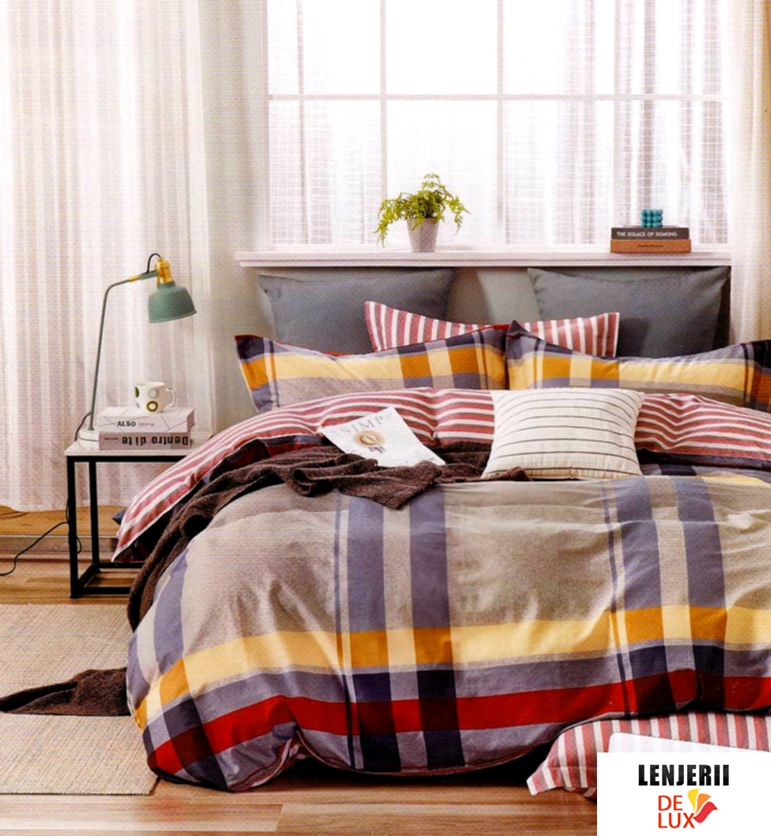 Materialul foarte moale la atingere al acestei lenjerii da un sentiment foarte placut de liniste si confort. Lenjeria din bumbac 100%, se adapteaza foarte bine la temperatura ambientala a caminului dumneavoastra, astfel incat pastreaza si degaja racoare vara, iar iarna caldura. Proprietatile bumbacului natural din care este confectionata lenjeria confera proprietati igienice deosebite, durabilitate in timp, protectia tesaturilor si stralucirea intensa a imprimeurilor.