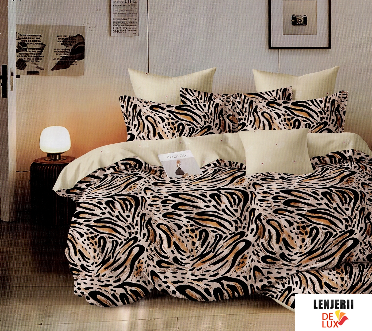 Prezentare Lenjerie de pat din finet cu imprimeu tigrat formata din 6 piese