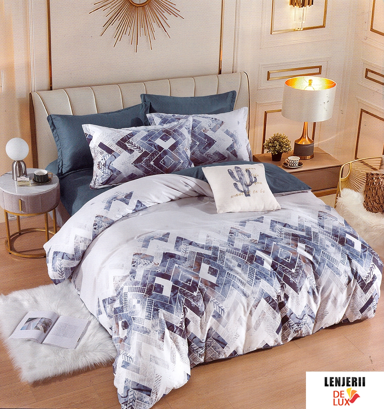Prezentare 1+1 Gratis Lenjerie de pat din finet cu imprimeuri geometrice formata din 6 piese