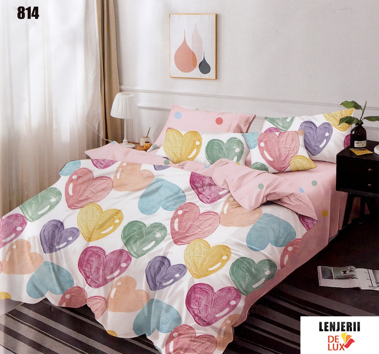 1+1 Gratis Lenjerie de pat din finet cu inimioare colorate formata din 6 piese