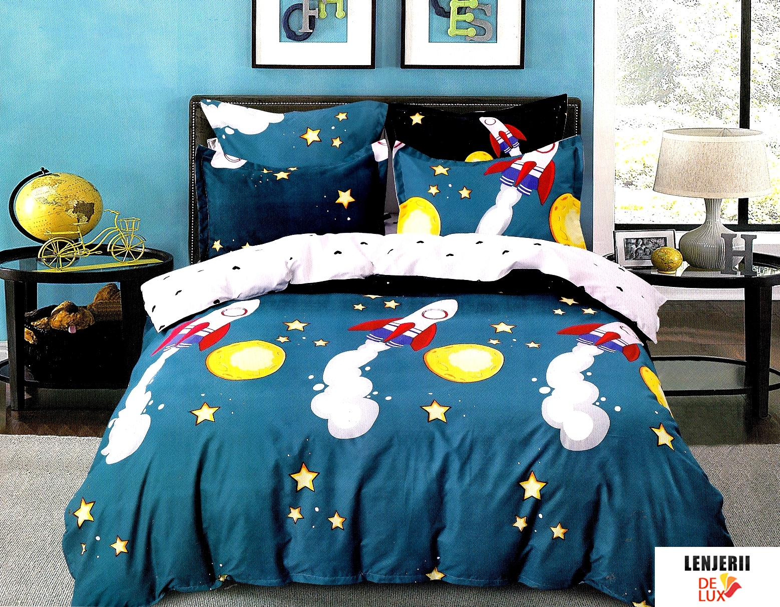 Prezentare 1+1 GRATIS Lenjerie de pat din finet cu racheta formata din 6 piese