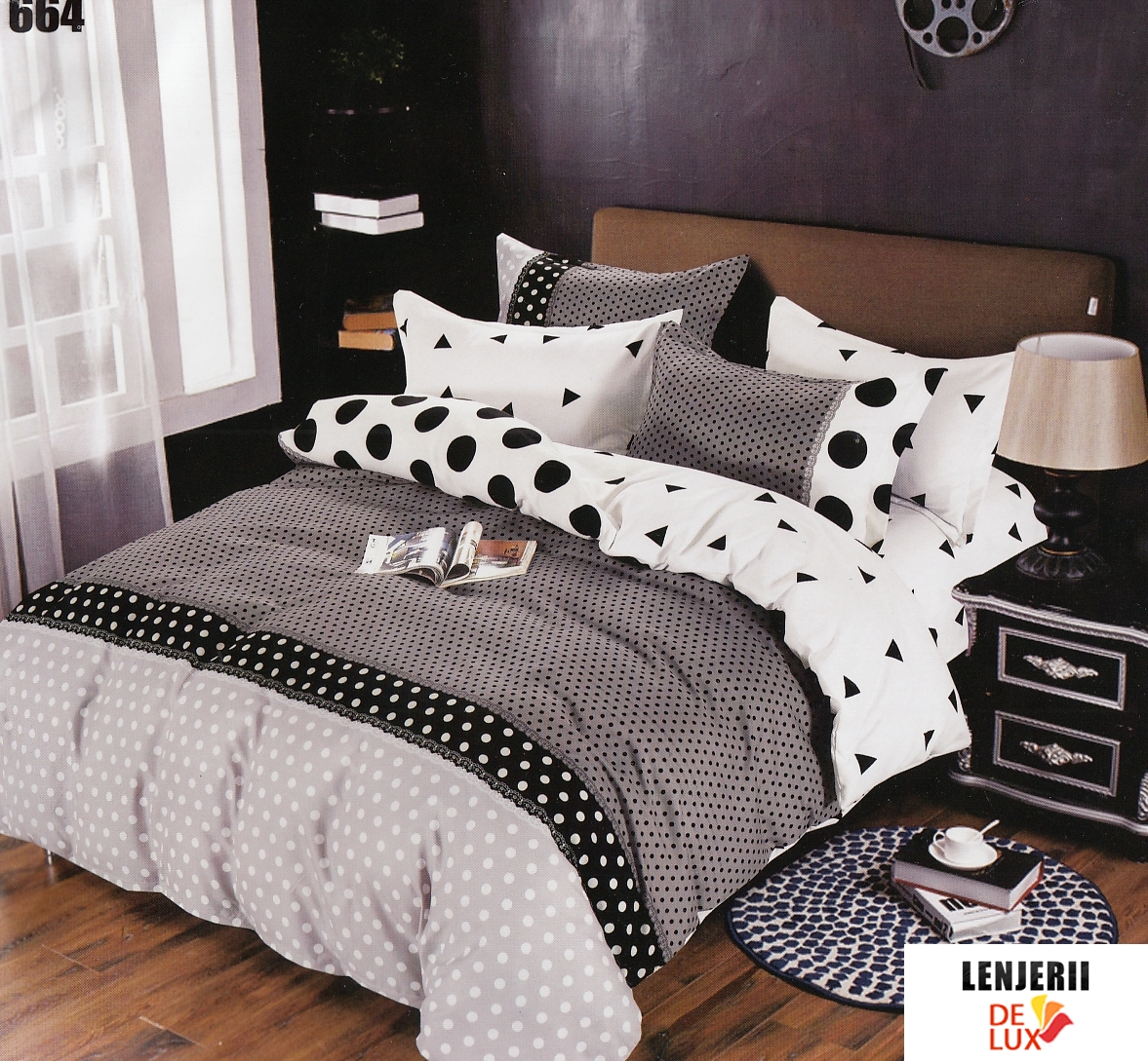 Prezentare 1+1 Gratis Lenjerie de pat din finet Pucioasa alba cu buline formata din 6 piese