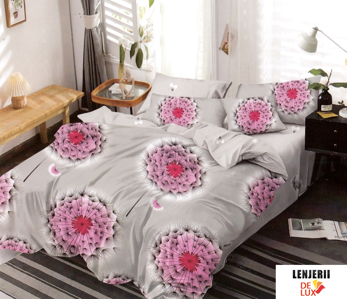 Prezentare 1+1 Gratis Lenjerie de pat din finet Pucioasa gri cu roz formata din 6 piese