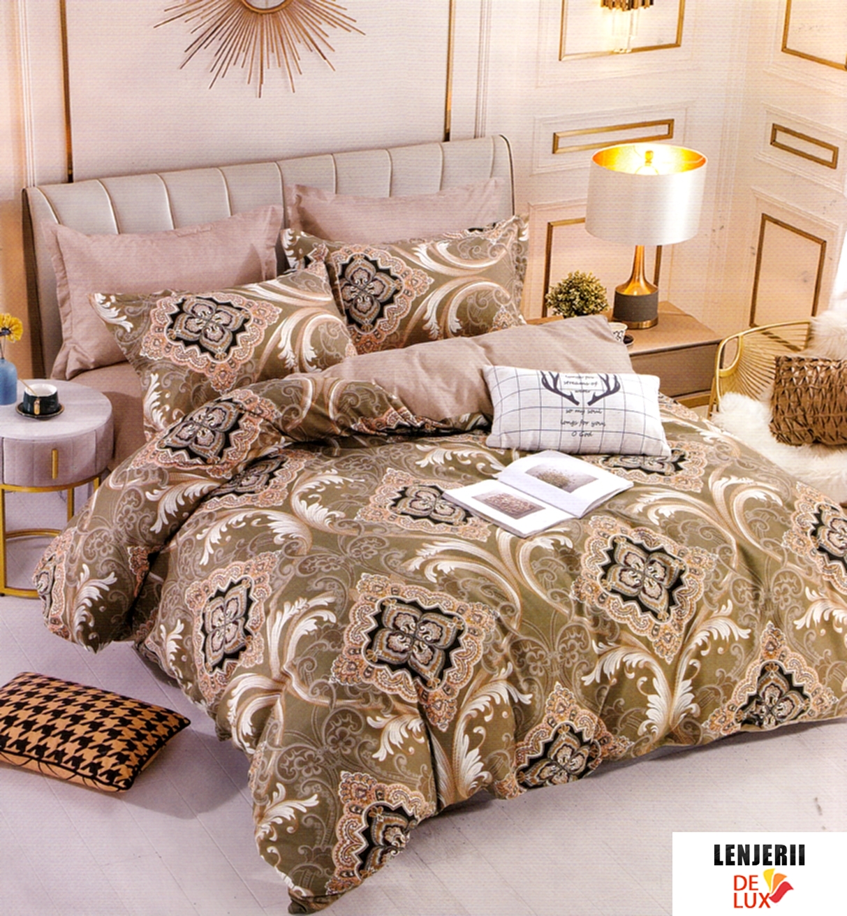 Prezentare 1+1 Gratis Lenjerie de pat premium cu imprimeuri din finet formata din 6 piese