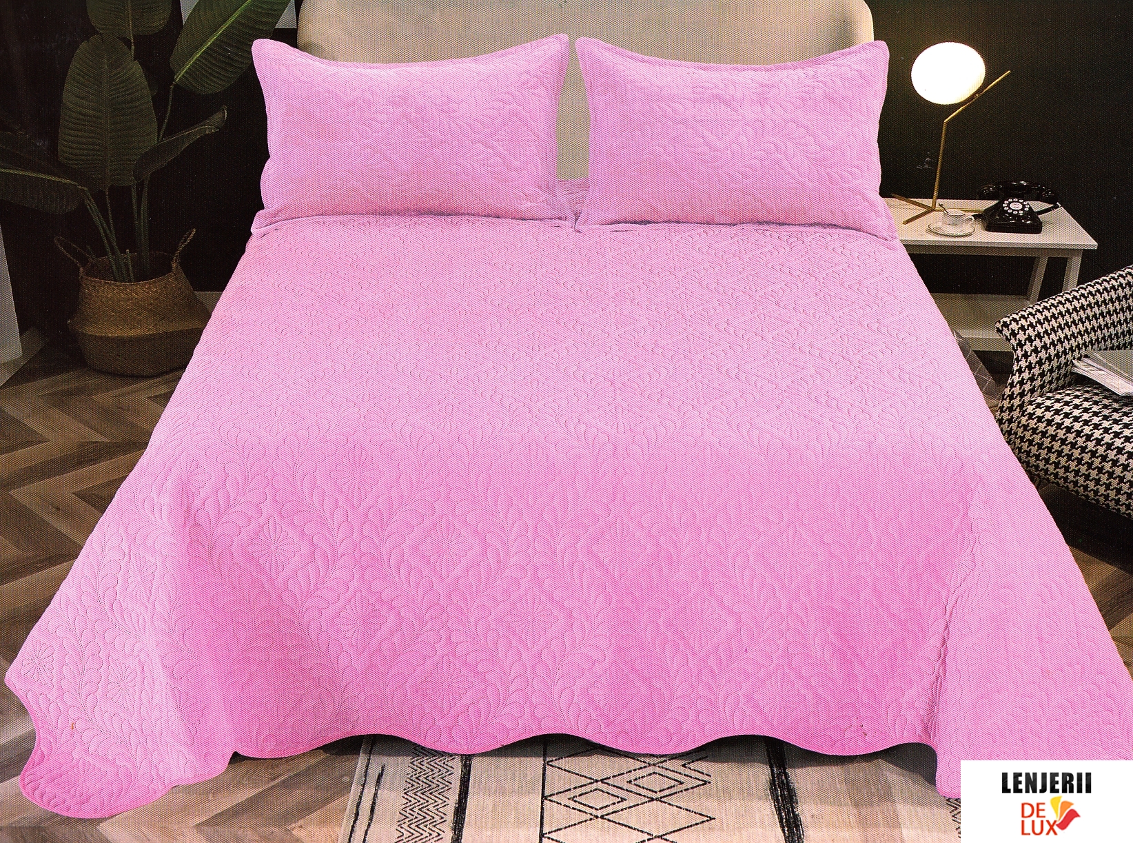 Prezentare Cuvertura de pat roz din catifea formata din 3 piese