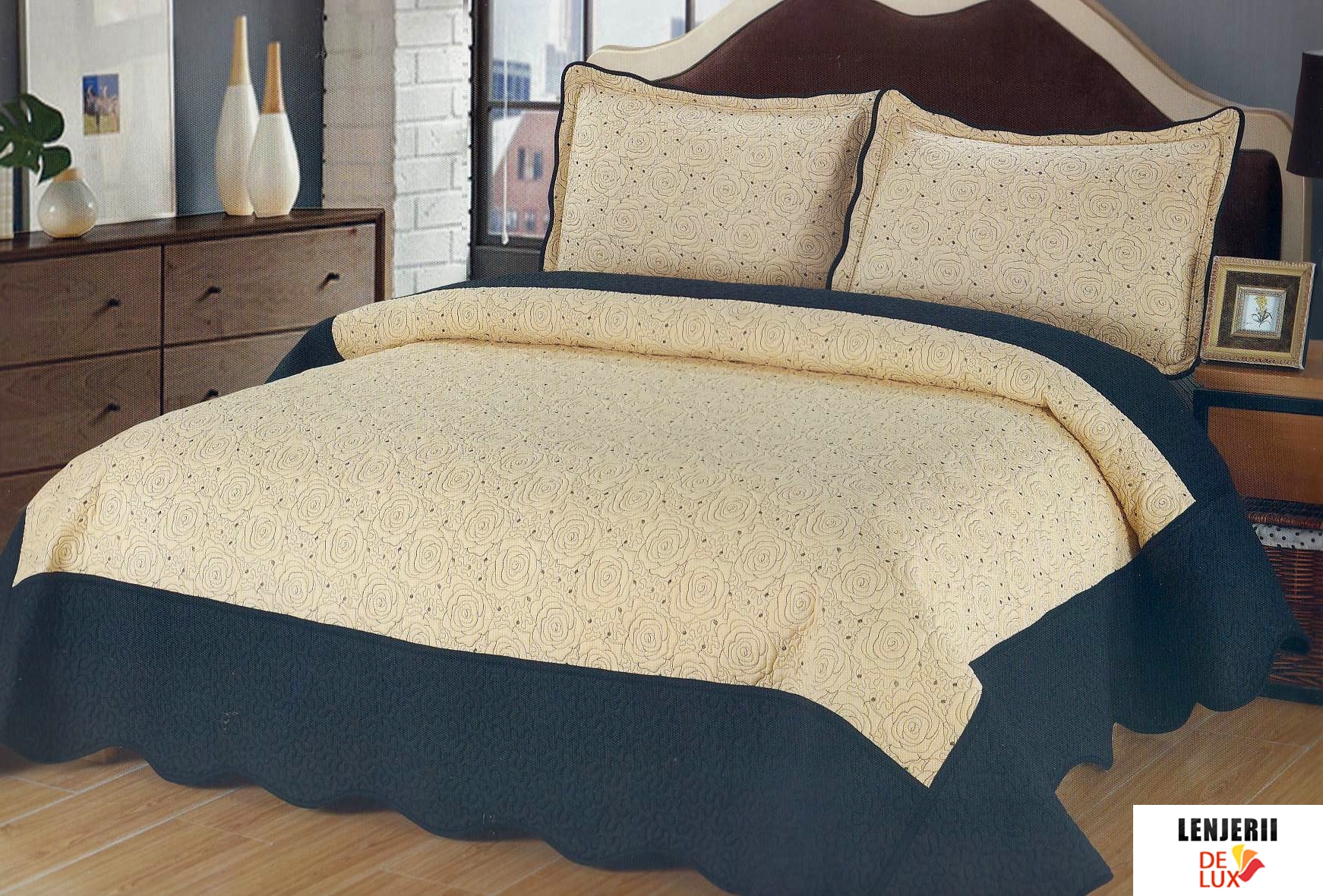 Prezentare Cuvertura pentru pat bej formata din 3 piese