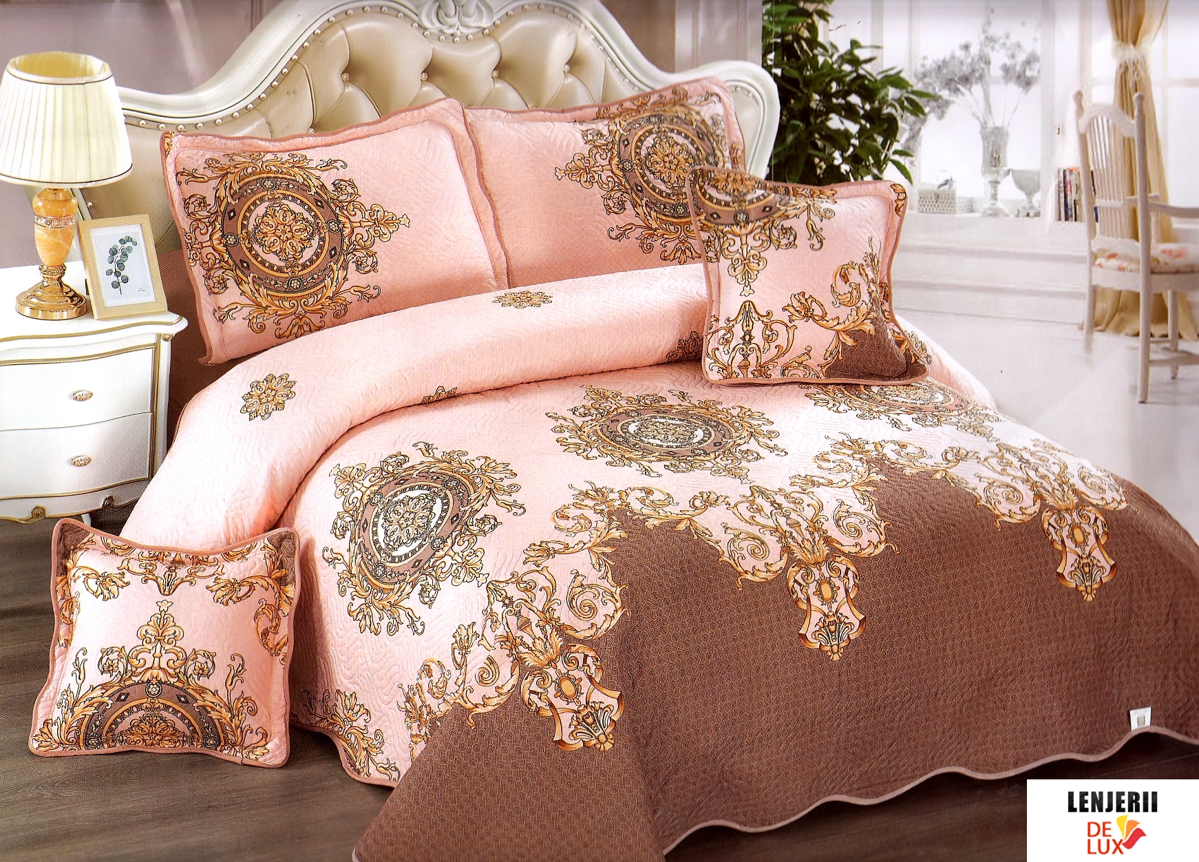 Cuvertura pentru pat matlasata cu imprimeuri orientale formata din 5 piese