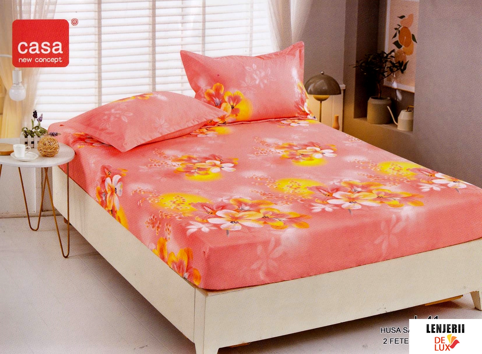 Husa de pat cu elastic + 2 fete de perna pentru saltea de 180x200 confectionate din bumbac satinat.