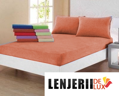 Husa pat cu elastic frotir 160x200 +2 fete de perna 50x70 portocaliu