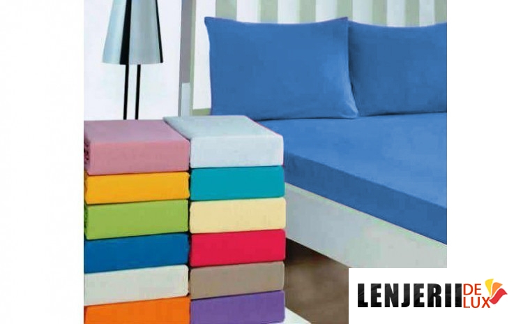 Husa pat cu elastic jersey 160x200 +2 fete de perna 50x70 albastru