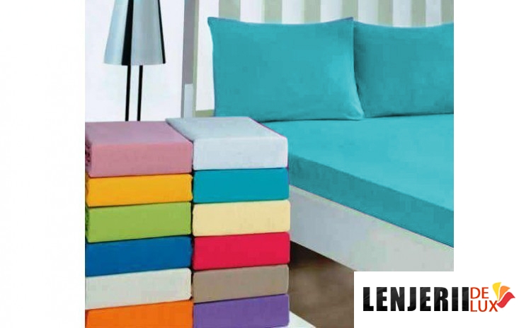 Husa pat cu elastic jersey 160x200 +2 fete de perna 50x70 turcoaz