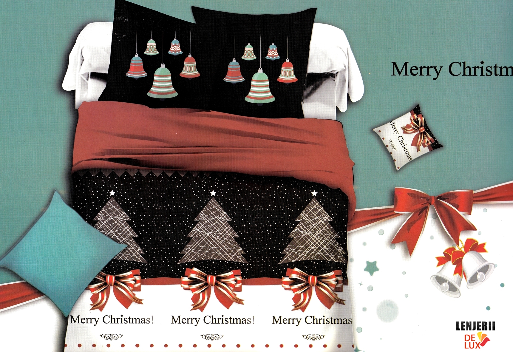 Lenjerie bumbac satinat Colectia Mos Craciun 6 piese + punga cadou 004