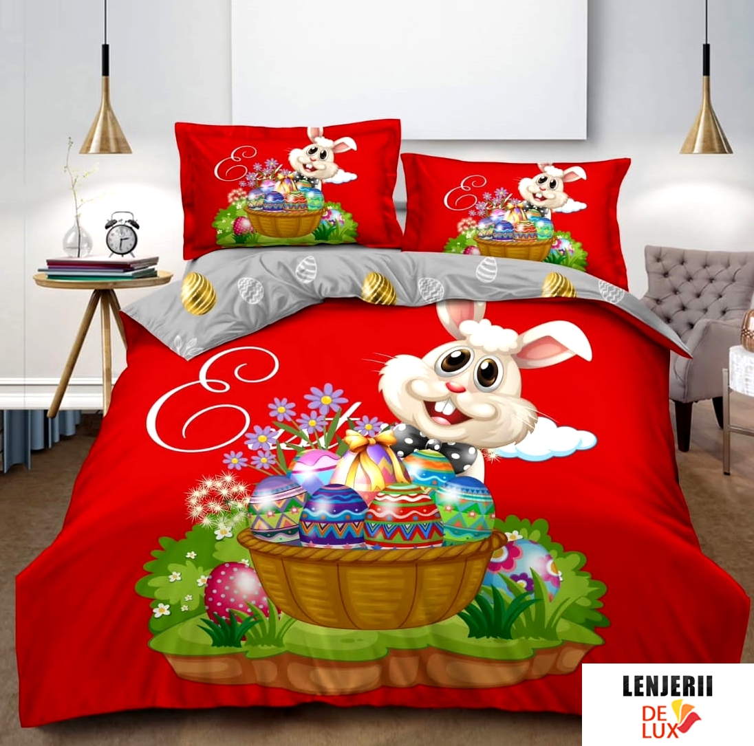 Colectie speciala de Paste! Lenjerii de pat cu iepurasi si oua de Paste din finet formate din 6 piese oferita de magazinul online Lenjerii de lux.