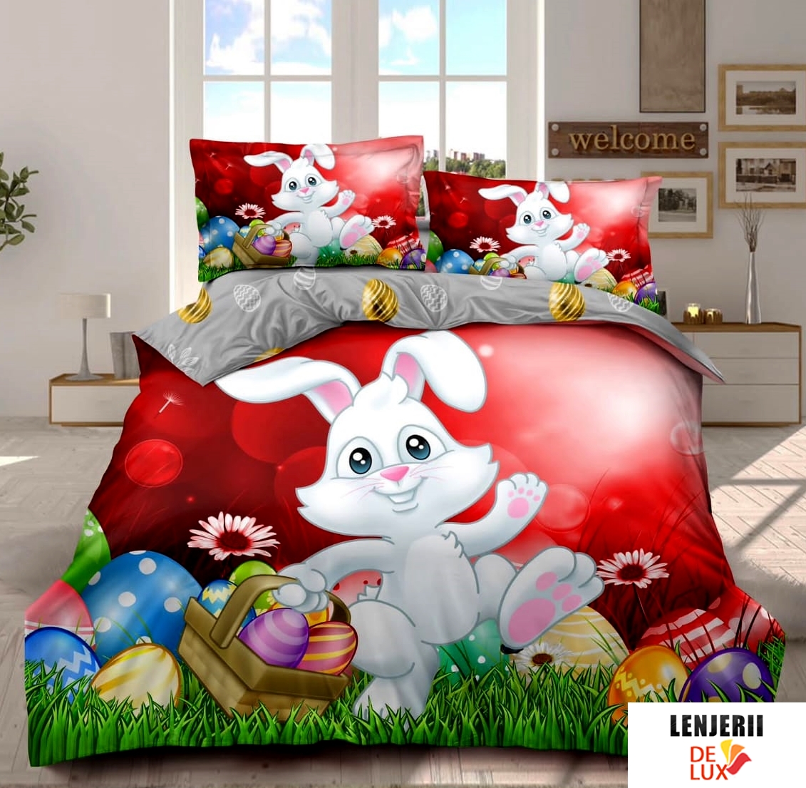 Colectie speciala de Paste! Lenjerii de pat cu iepurasi si oua de Paste din finet formate din 6 piese oferita de magazinul online Lenjerii de lux.