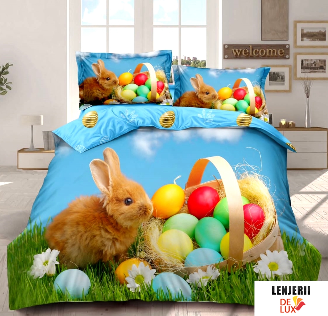 Colectie speciala de Paste! Lenjerii de pat cu iepurasi si oua de Paste din finet formate din 6 piese oferita de magazinul online Lenjerii de lux.