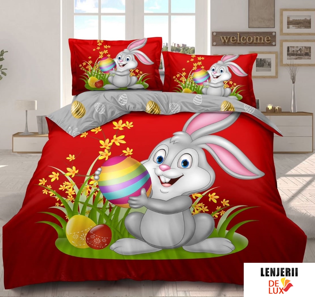 Colectie speciala de Paste! Lenjerii de pat cu iepurasi si oua de Paste din finet formate din 6 piese oferita de magazinul online Lenjerii de lux.