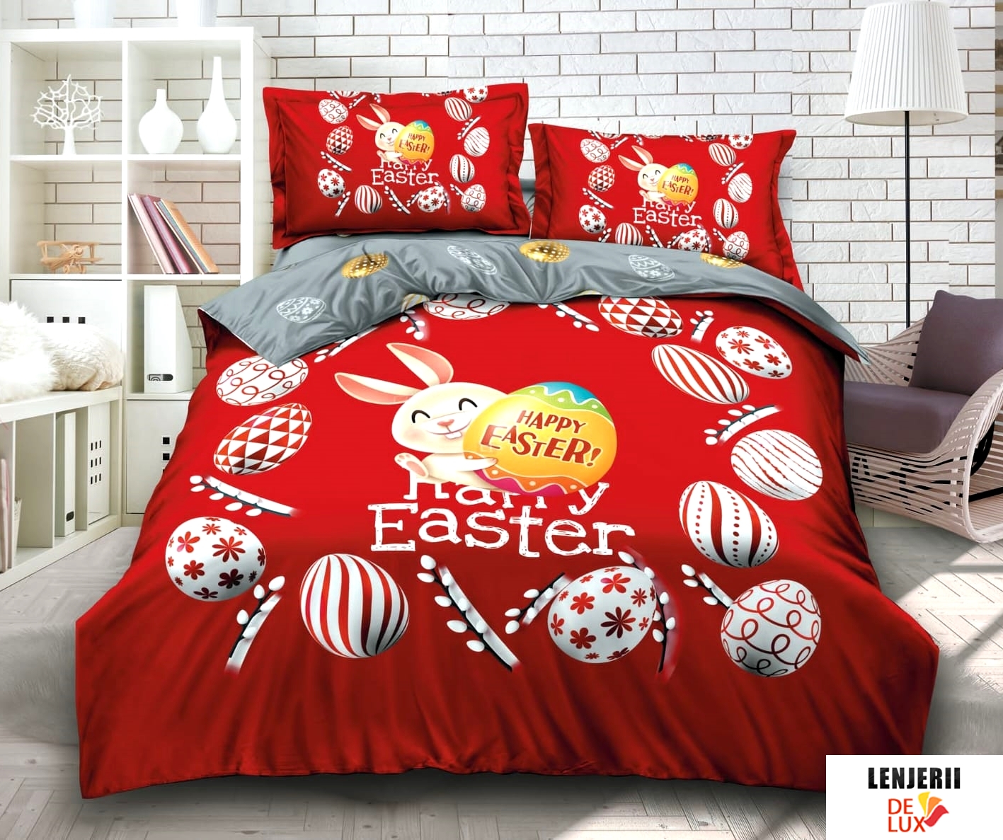 Colectie speciala de Paste! Lenjerii de pat cu iepurasi si oua de Paste din finet formate din 6 piese oferita de magazinul online Lenjerii de lux.