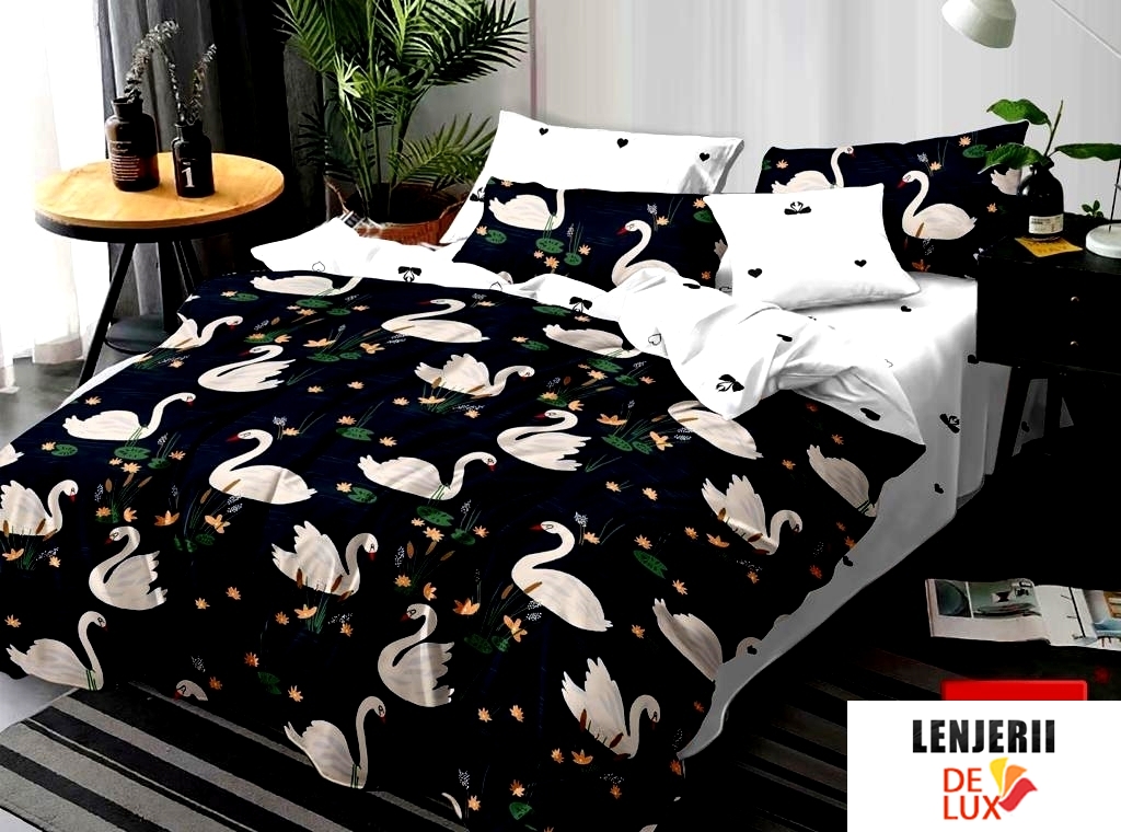 Prezentare Lenjerie de pat cu lebada din finet Casa New Concept formata din 6 piese + Pilota