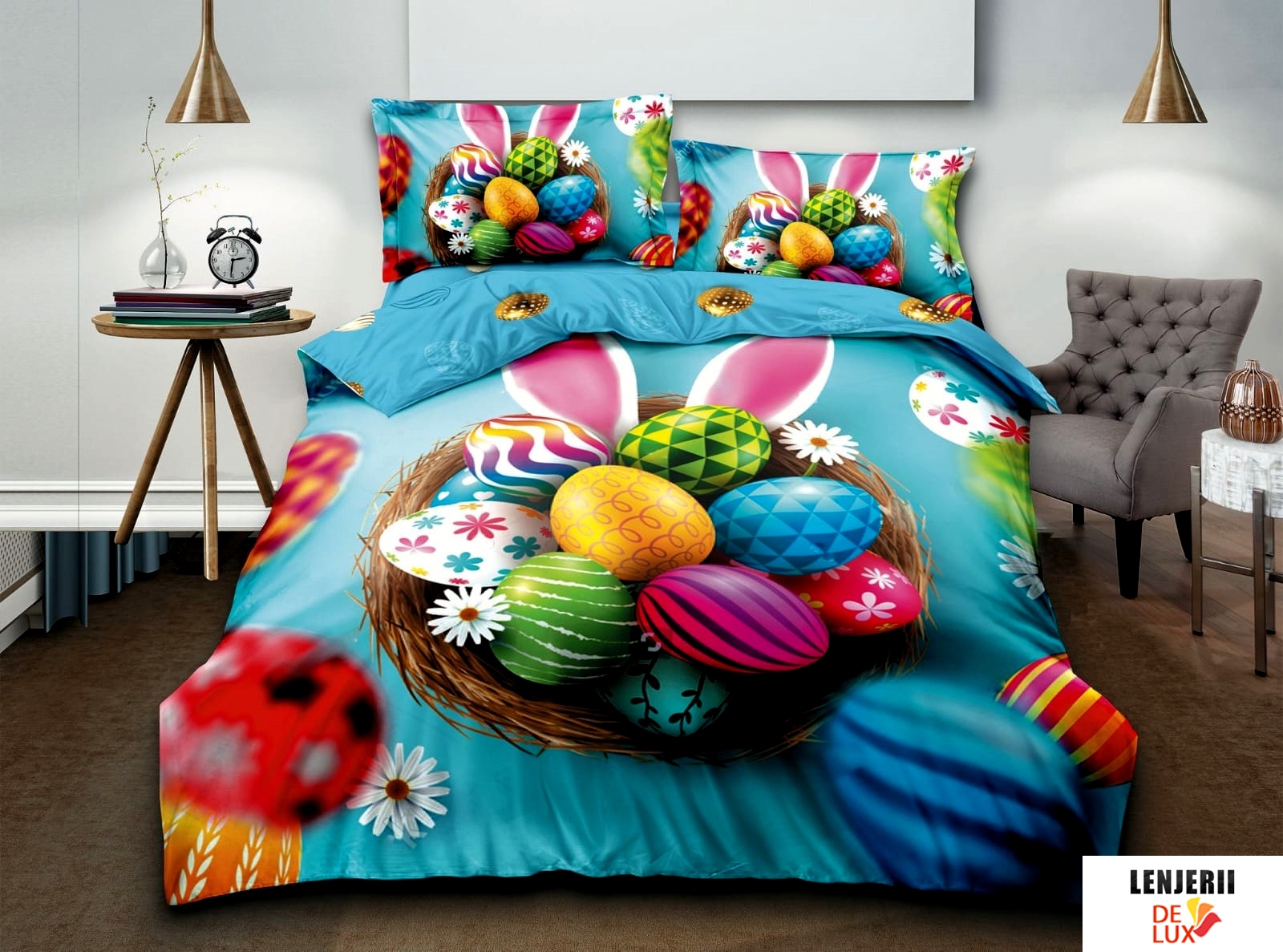 Colectie speciala de Paste! Lenjerii de pat cu iepurasi si oua de Paste din finet formate din 6 piese oferita de magazinul online Lenjerii de lux.