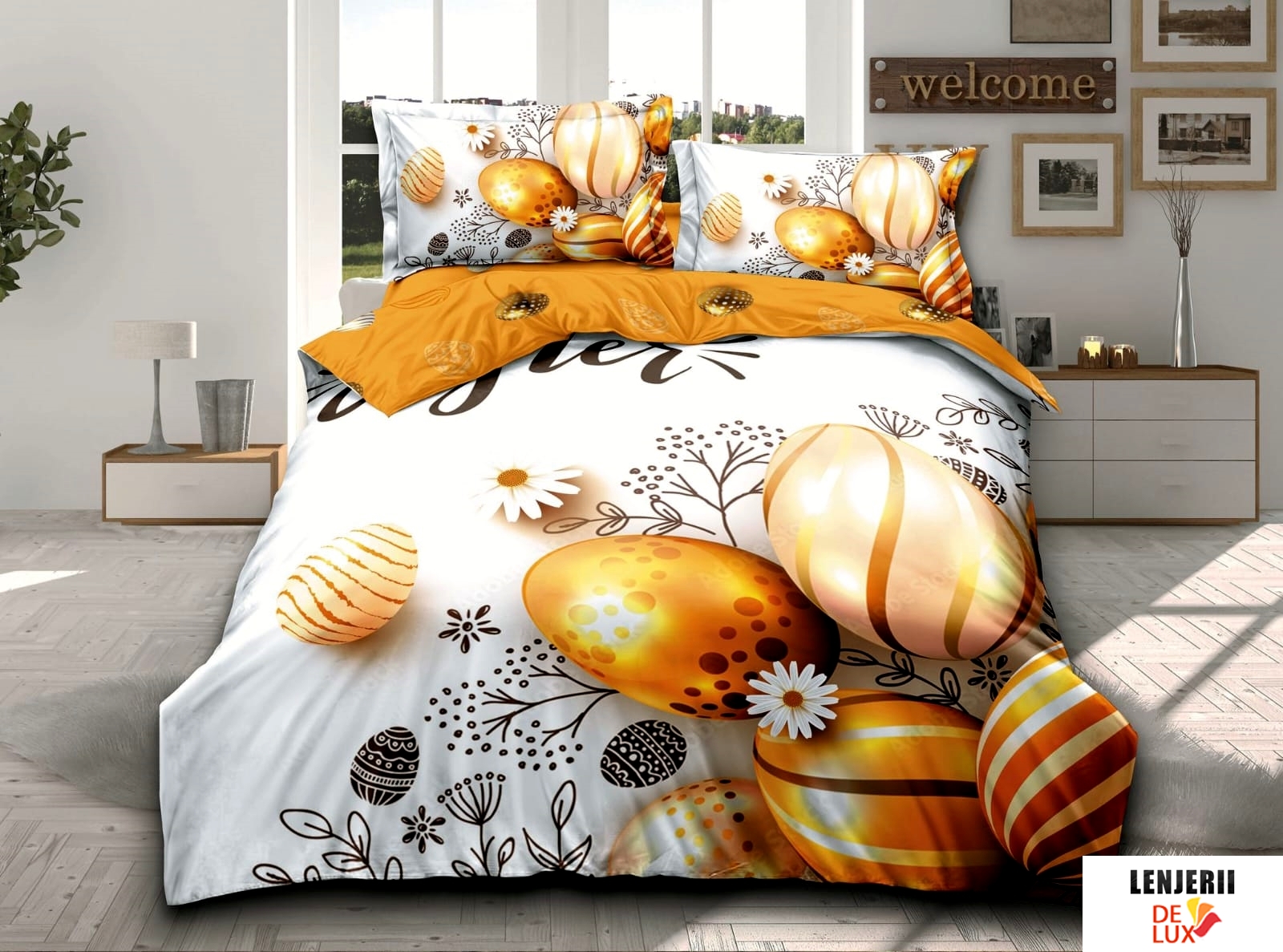 Prezentare Lenjerie de pat cu oua de Paste din finet formata din 4 piese 26