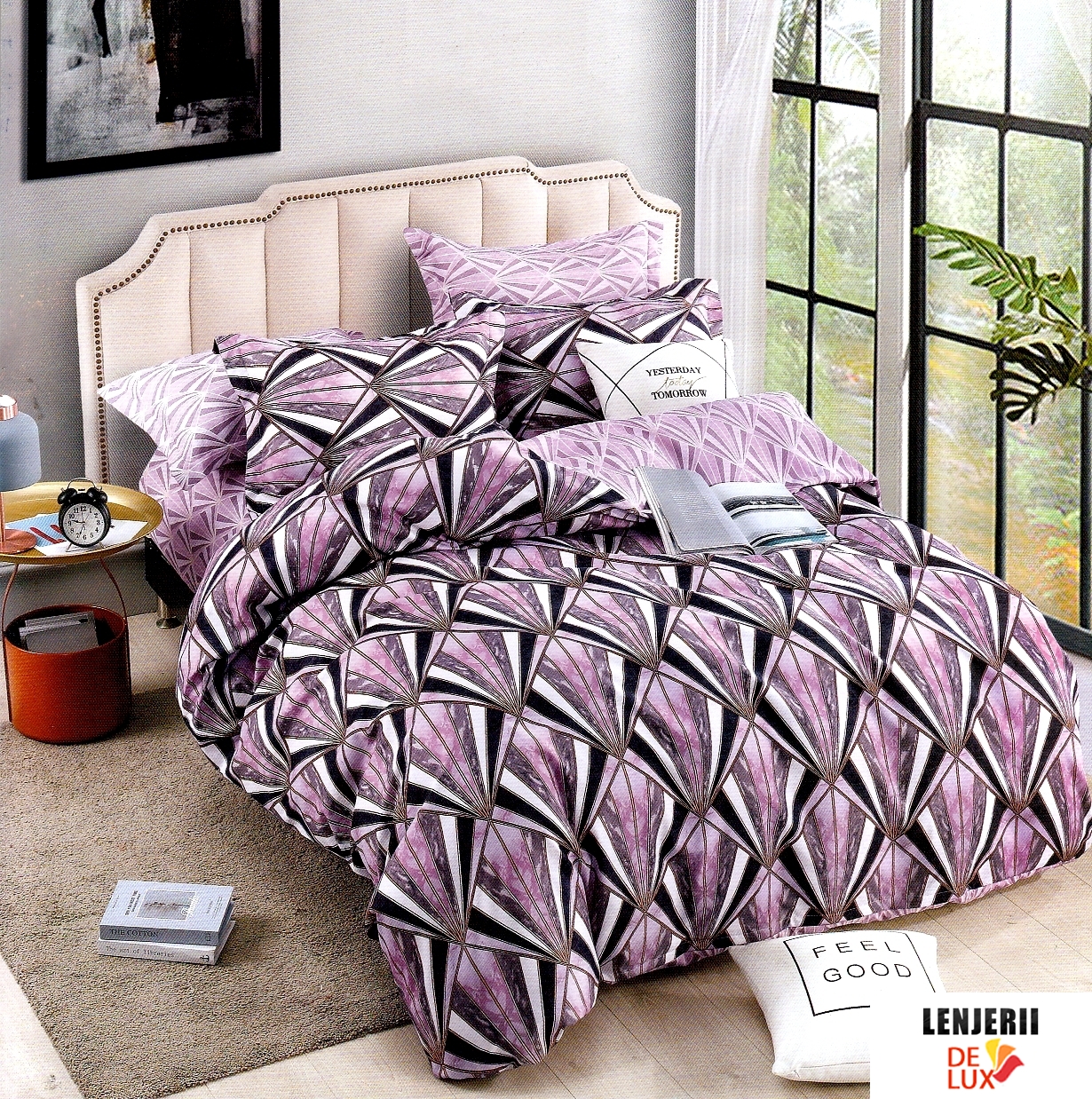 Lenjerie de pat cu romburi mov din finet formata din 6 piese + Pilota