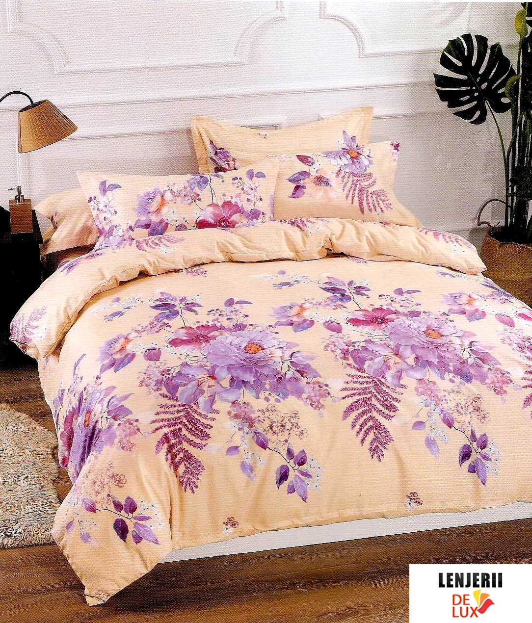Lenjerie de pat din bumbac satinat Casa New Fashion 4 piese Design Modern + PILOTA CADOU 005