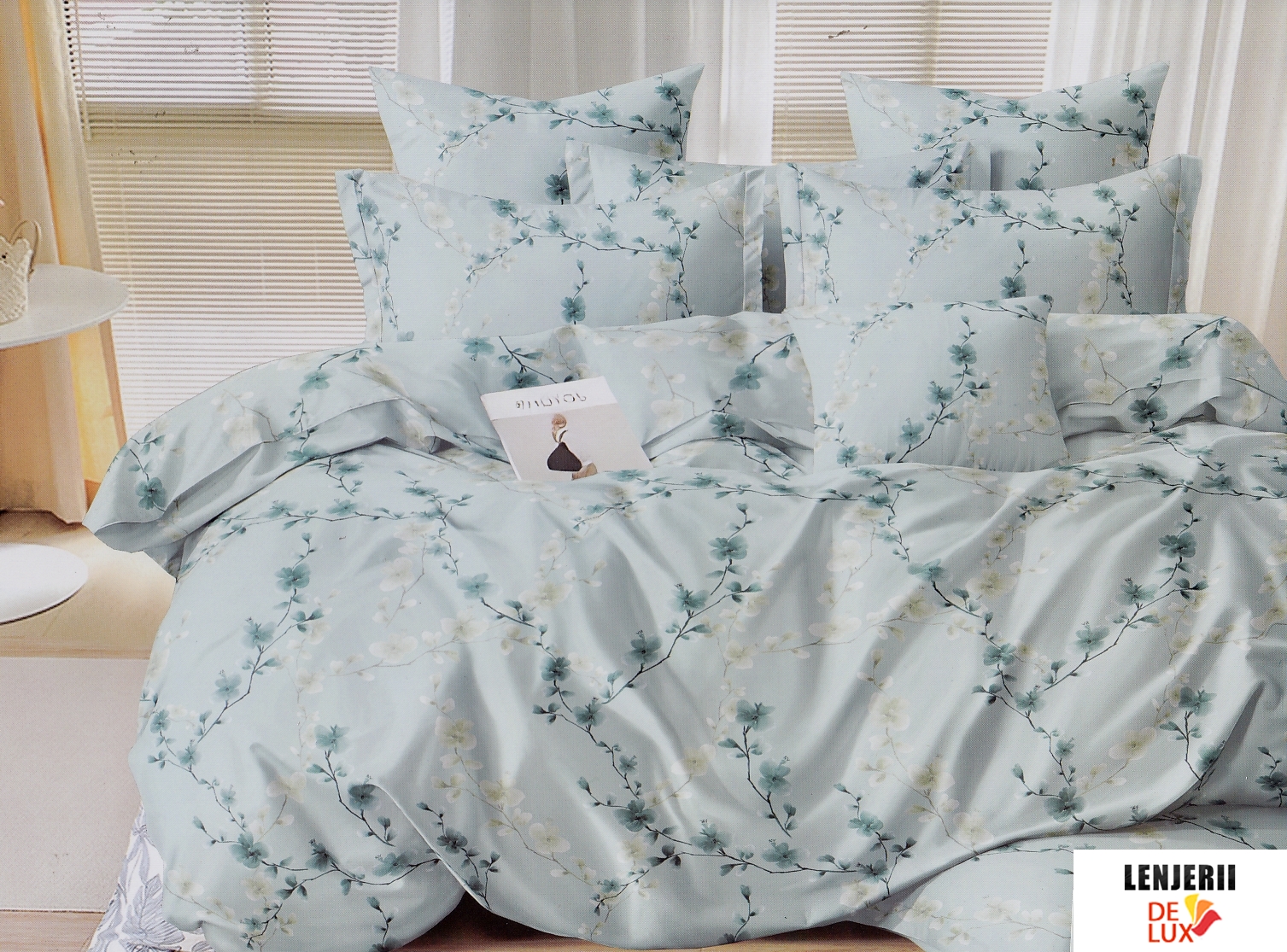 Prezentare Lenjerie de pat din bumbac satinat cu imprimeuri Casa New Fashion 6 piese + Pilota cadou