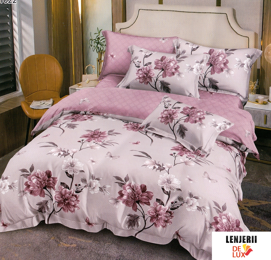 Prezentare Lenjerie de pat din finet cu bujori roz formata din 6 piese + Pilota