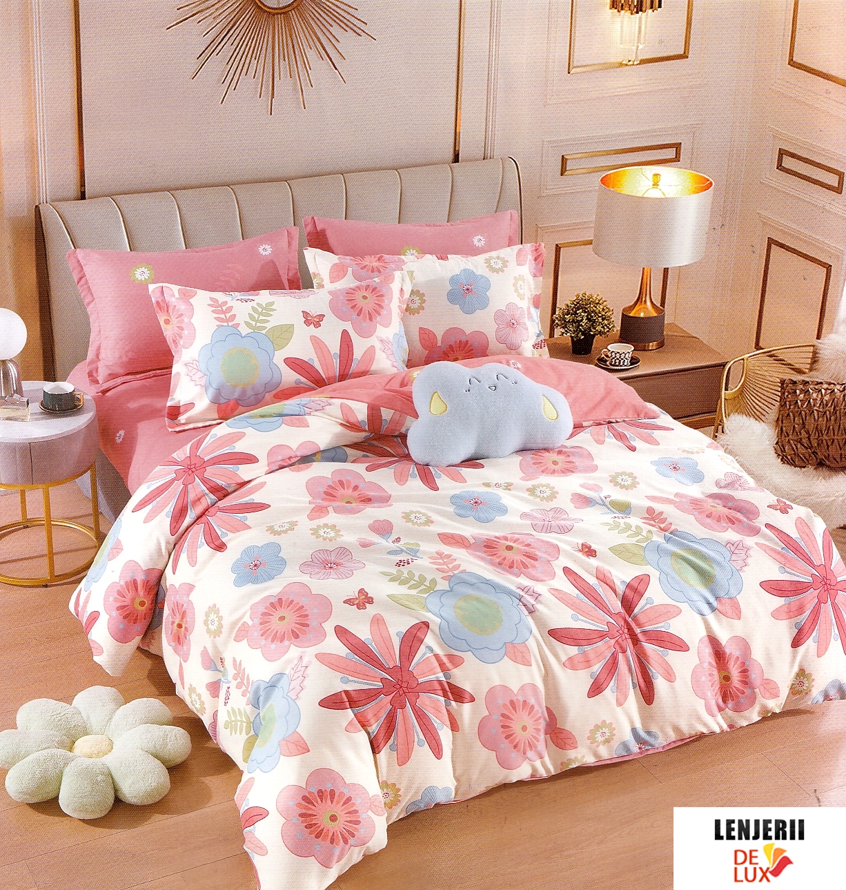 ATENTIE: Cearceaful de pat si cearceaful de pilota sunt imprimate precum in poza de prezentare.