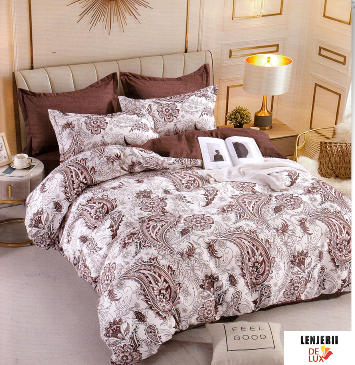Lenjerie de pat din finet cu imprimeuri maro formata din 6 piese + Pilota cadou