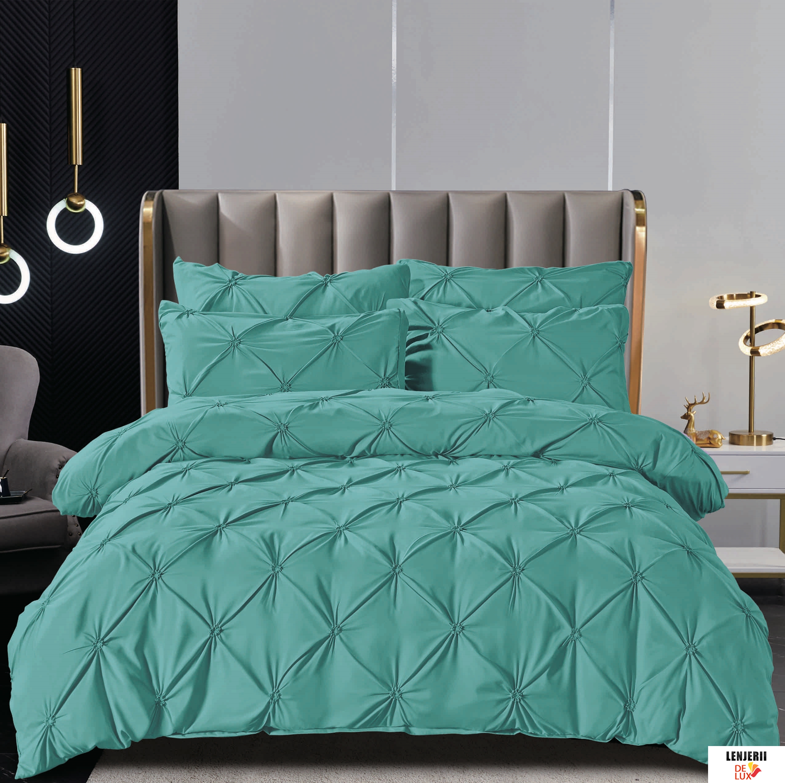 Lenjerie de pat uni cu pliuri din finet formata din 6 piese + Pilota 04