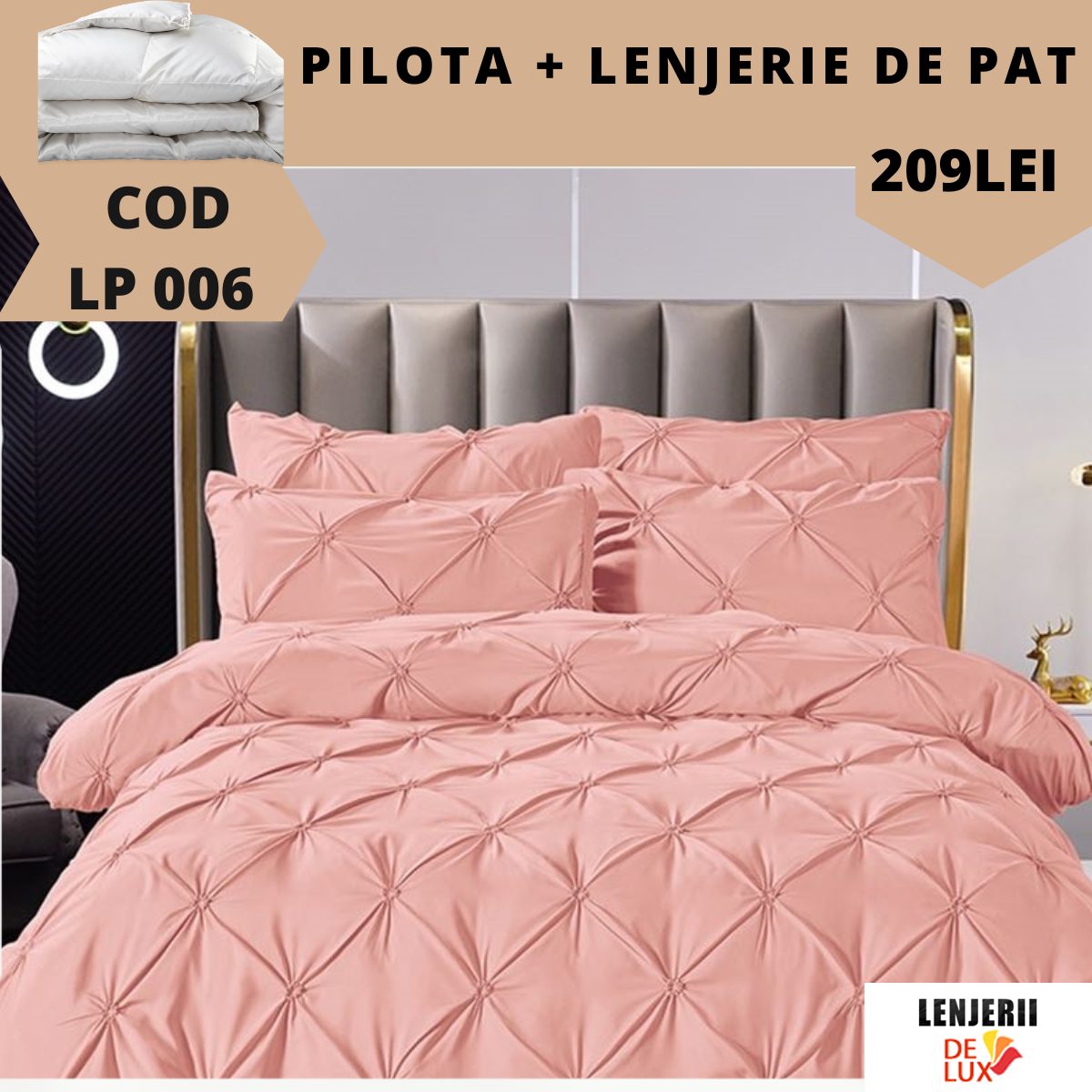 Prezentare Lenjerie de pat uni cu pliuri din finet formata din 6 piese + Pilota 06