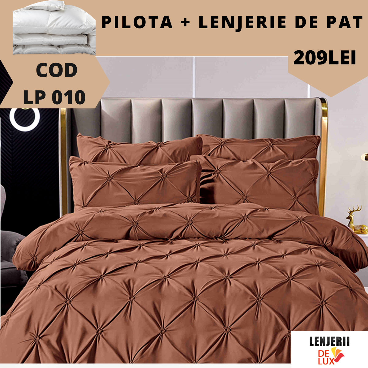 - Fata perna: 70 x 70 cm (2 buc.)
