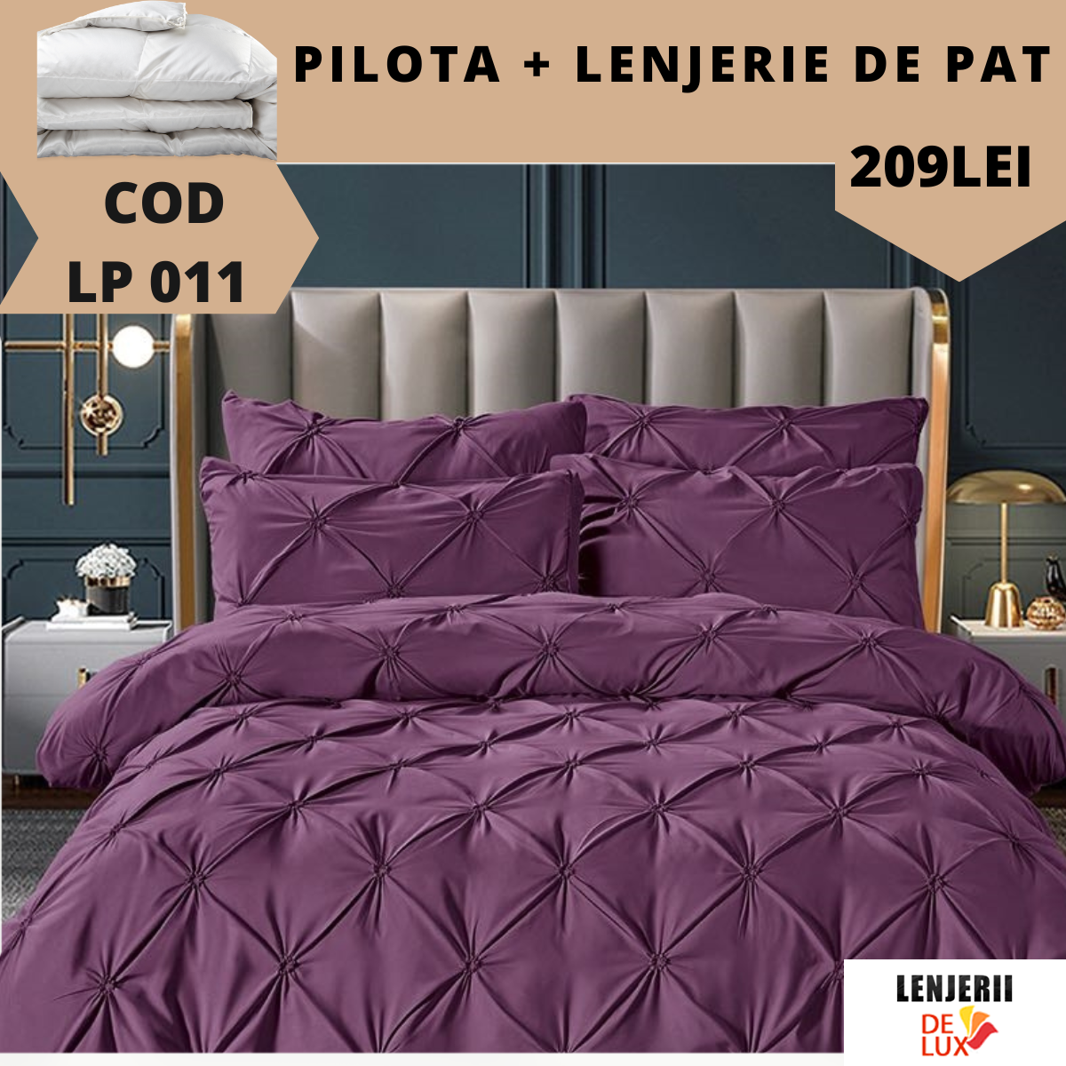 Prezentare Lenjerie de pat uni cu pliuri din finet formata din 6 piese + Pilota 11