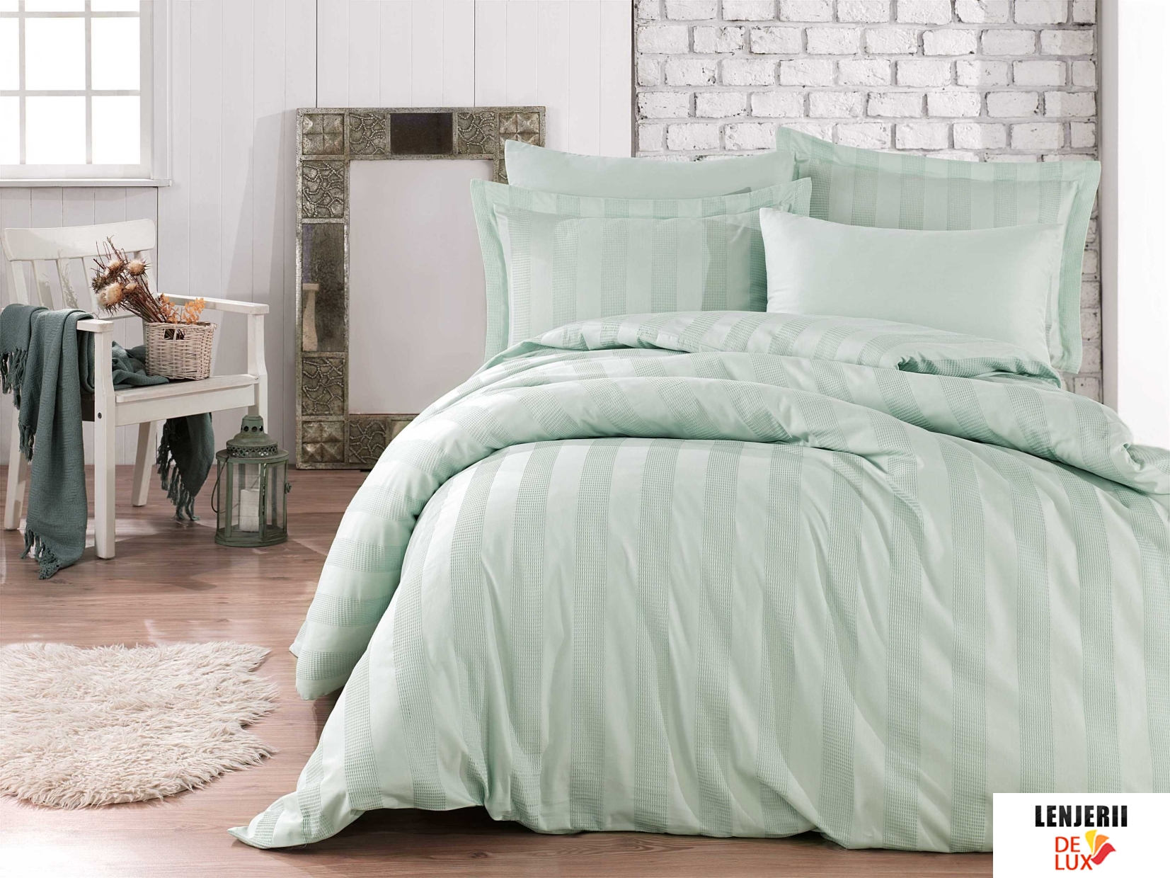 Prezentare Lenjerie de pat verde din bumbac satinat Hobby 6 piese Wafel