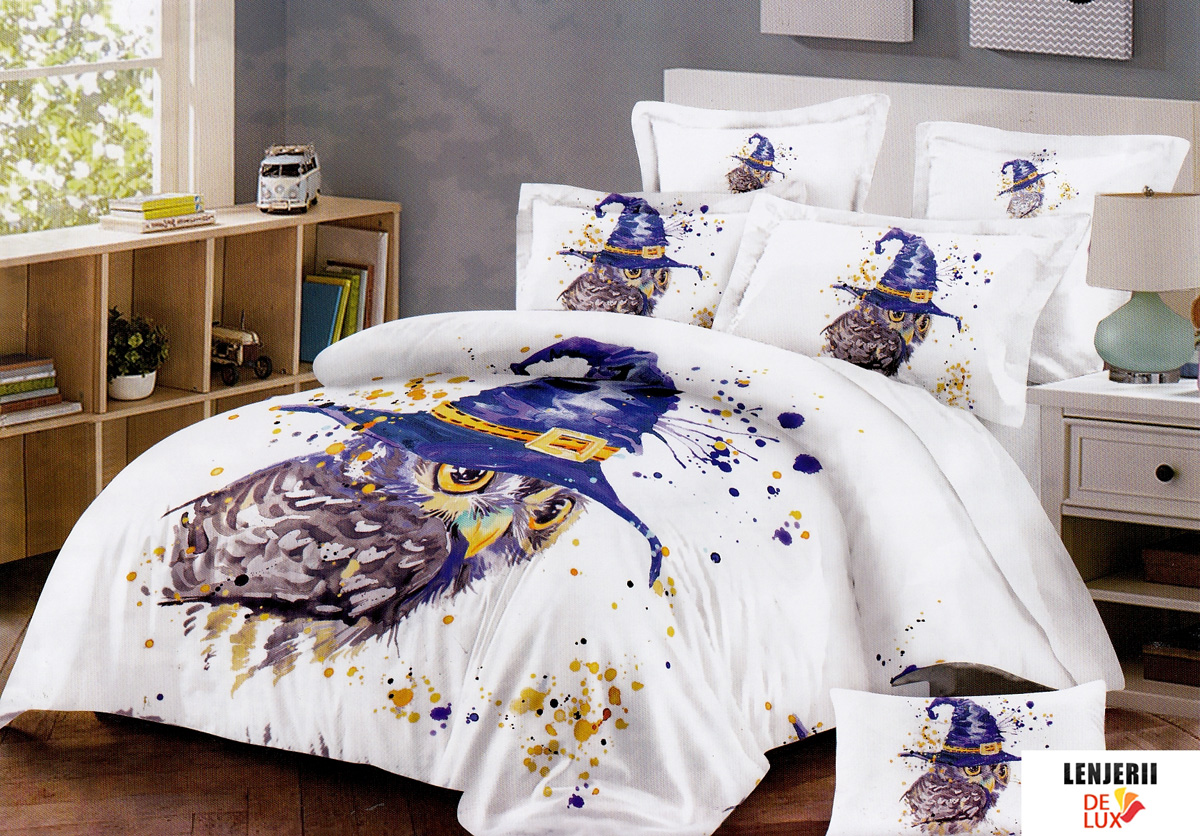 Prezentare Oferta TRIO Lenjerie de pat cu bufnita imprimata din finet formata din 6 piese