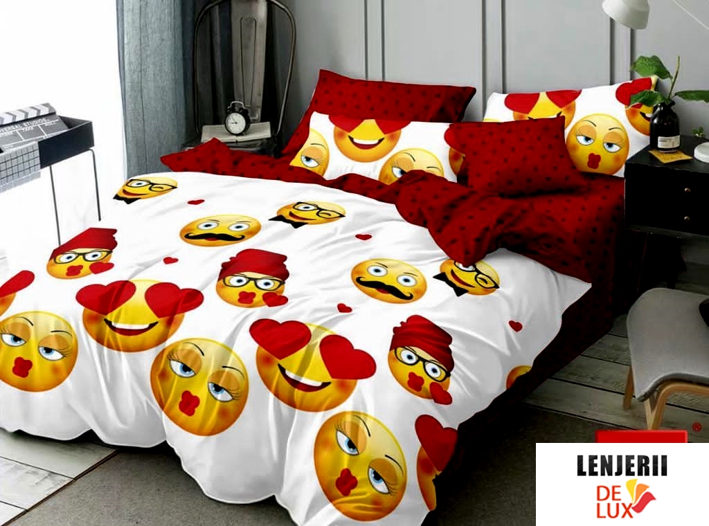 Prezentare PILOTA+2 PERNE+Lenjerie de pat cu smiley face din finet Casa New Concept formata din 6 piese