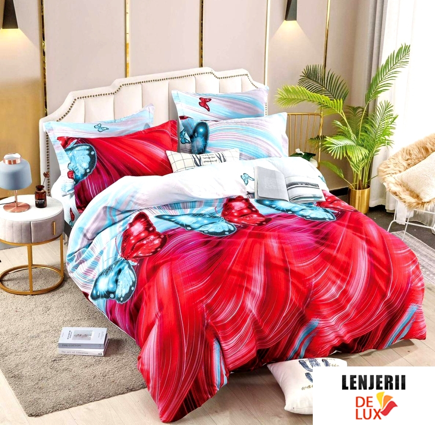 PILOTA+2 PERNE+Lenjerie de pat din finet cu fluturi formata din 6 piese