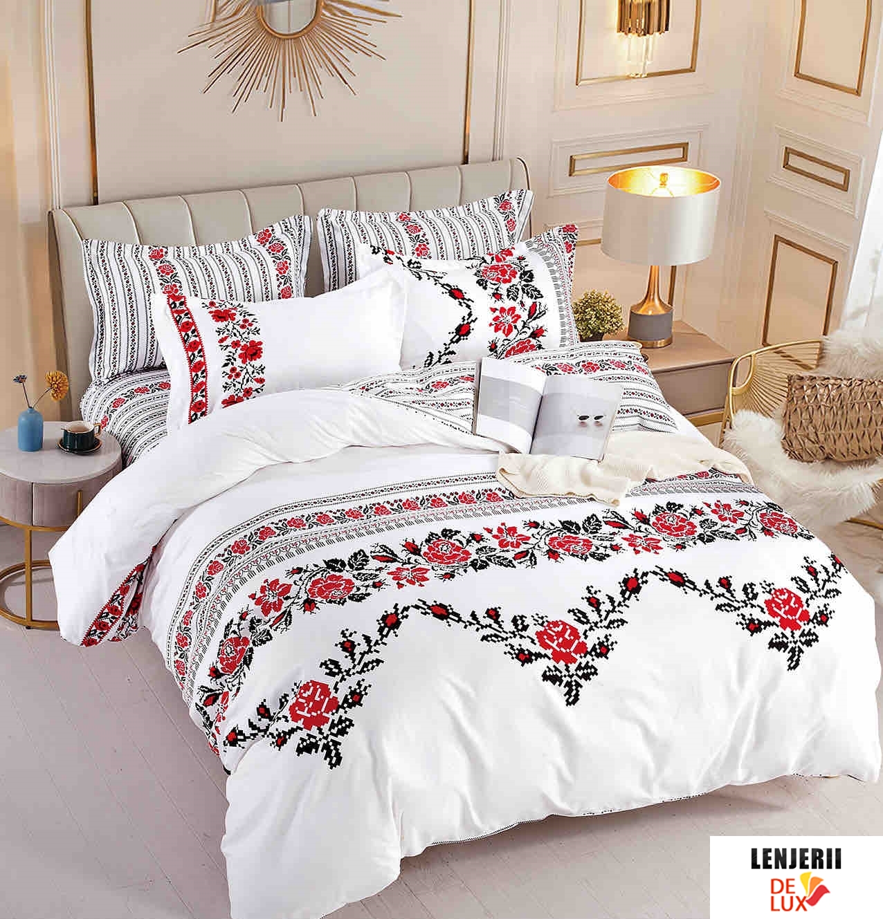 Prezentare PILOTA+2 PERNE+Lenjerie de pat din finet cu imprimeu traditional formata din 6 piese