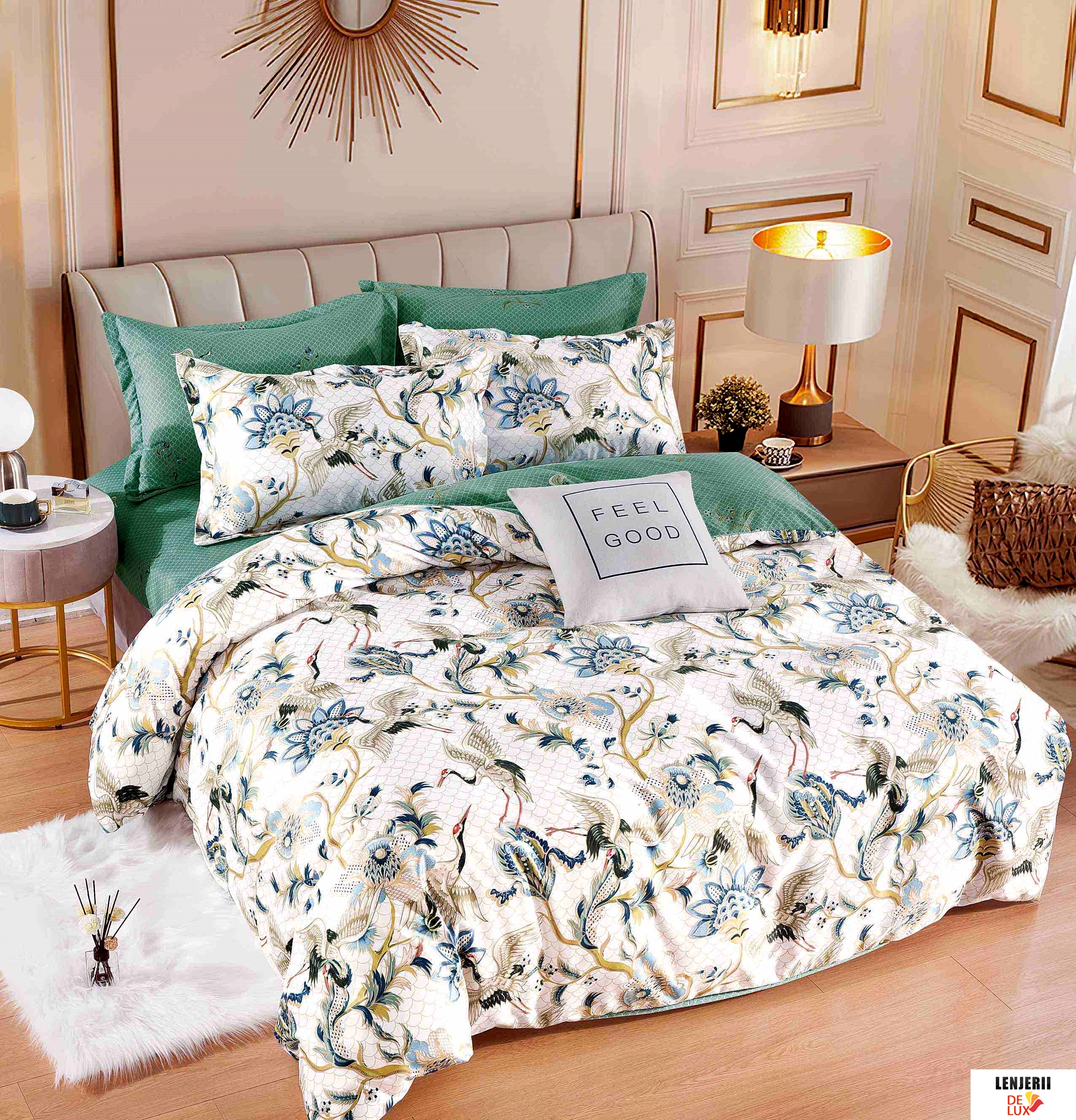 PILOTA+2 PERNE+Lenjerie de pat din finet cu pasari formata din 6 piese
