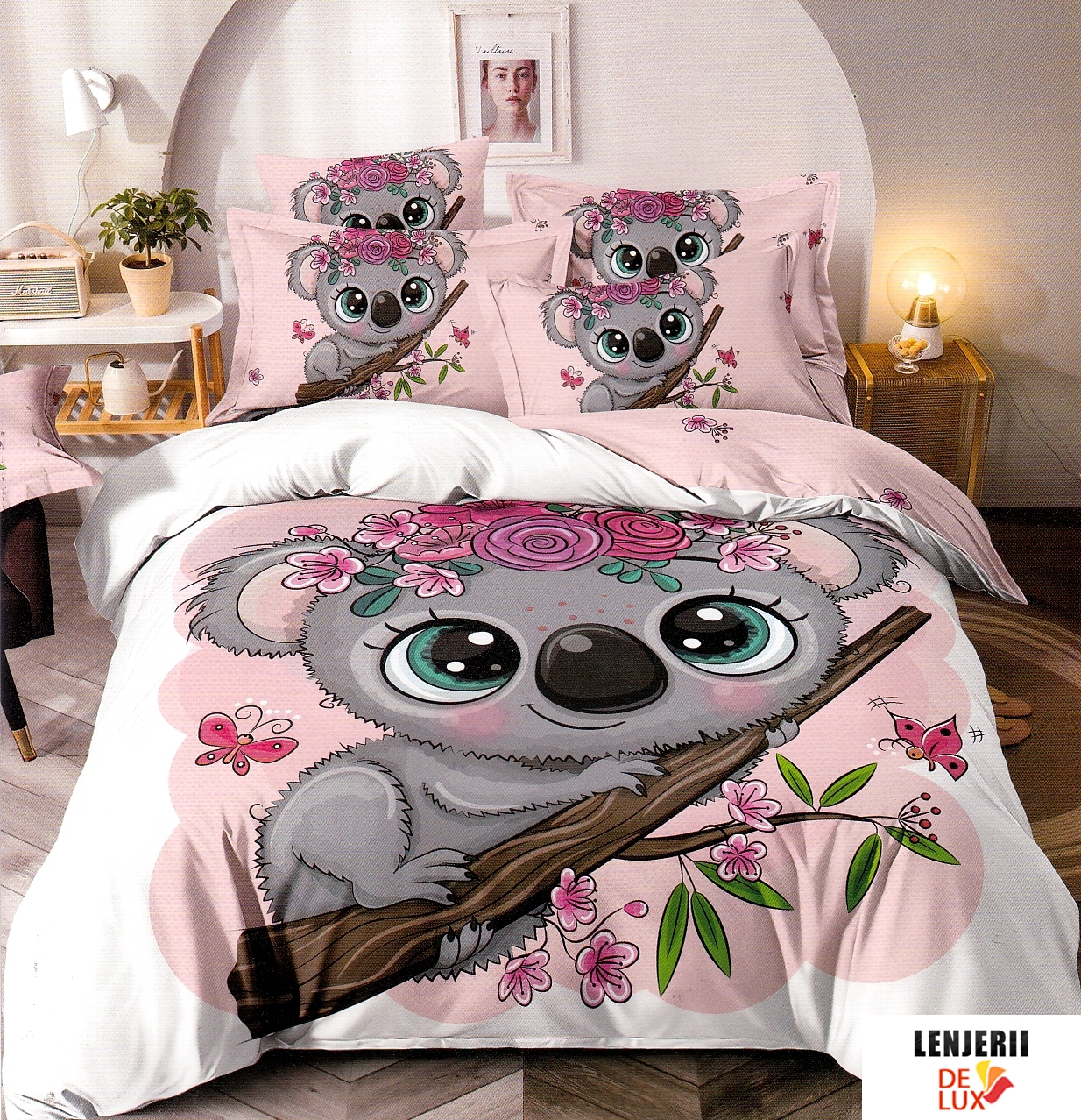 PILOTA+2 PERNE+Lenjerie de pat din finet cu urs koala formata din 6 piese