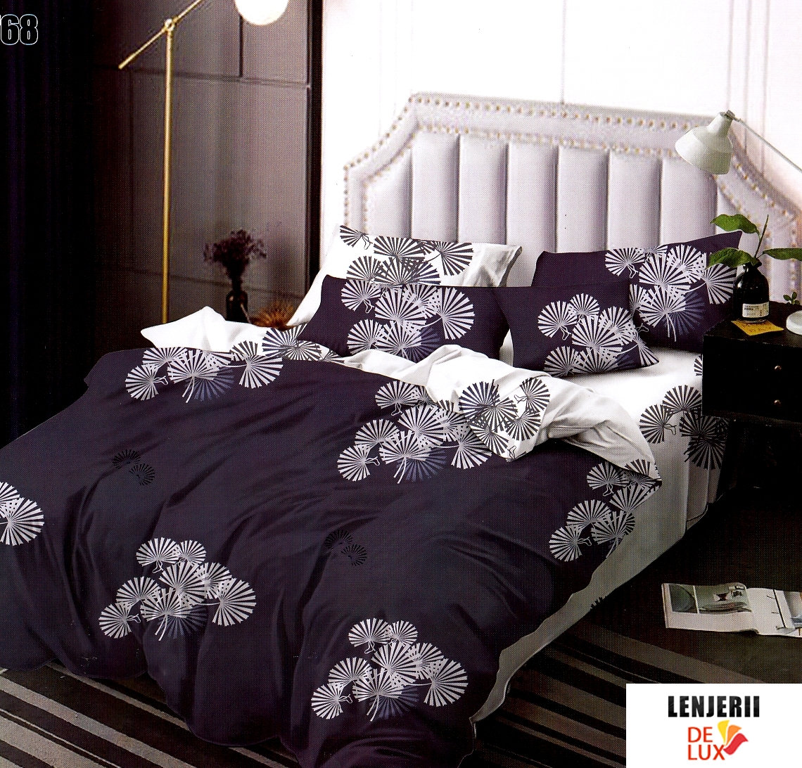 Prezentare PILOTA+2 PERNE+Lenjerie de pat din finet Pucioasa cu imprimeuri albe formata din 6 piese