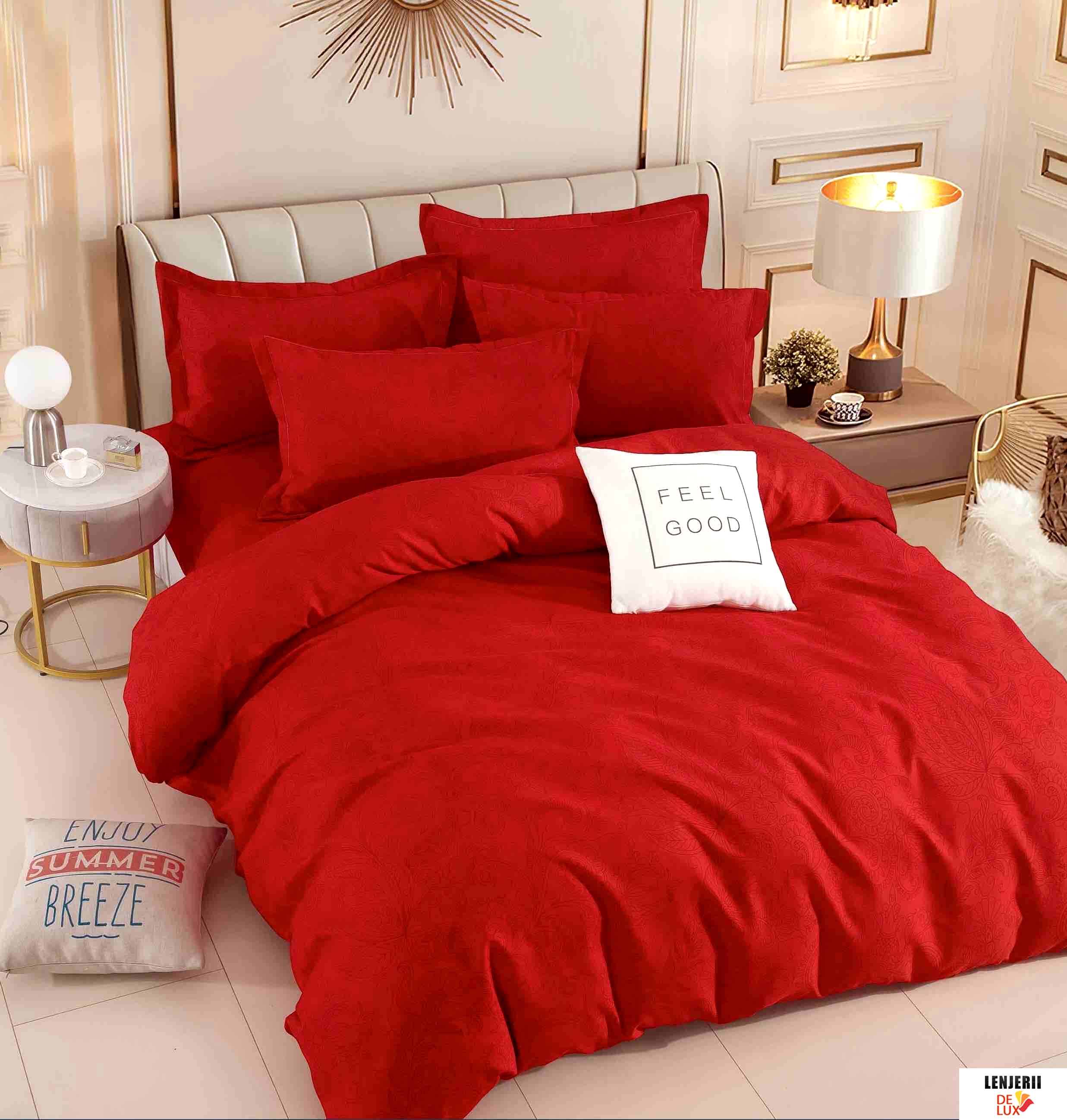Prezentare PILOTA+2 PERNE+Lenjerie de pat din finet rosie cu imprimeuri formata din 6 piese