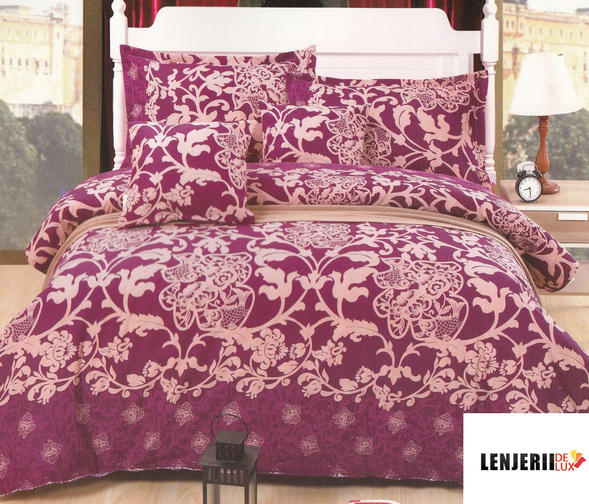 Prezentare Set de pat cu pilota Casa New Concept 6 piese mov cu imprimeuri